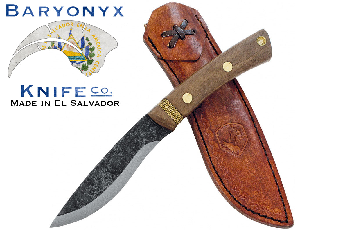 A tough little hard use knife for bushcraft and camping, the Huron sports a convex saber grind with a forward cant and subtle recurve ideal for making drawing cuts on resistant or slippery materials. The walnut handle has a subtle low-profile forefinger notch and brass wire wrap for a secure grip without restricting the possible range of holds. Comes with a high quality leather deep-carry sheath. One of Condors first offerings in 1095 high carbon steel!