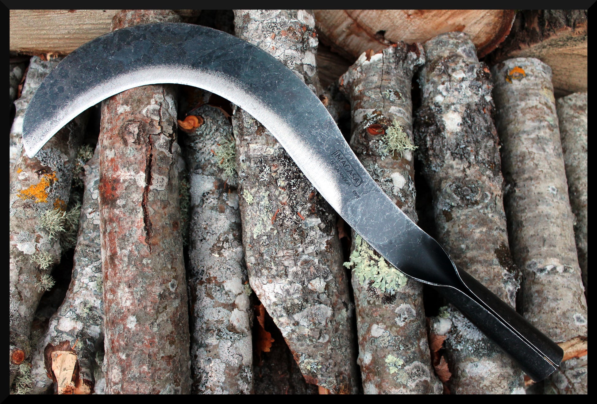 A socketed machete commonly gripped by the socket without an additional handle, these machetes are also excellent when put on the end of a pole for scythe-like slashing ability.