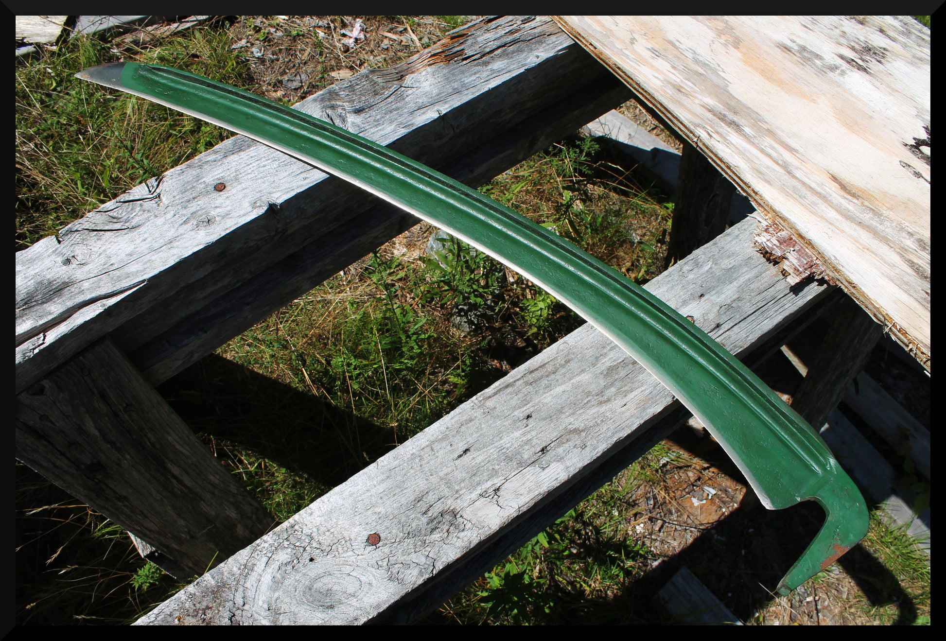 Blades over 30" require more skill to wield without bogging them down in heavy growth, but cover ground swiftly and slice aggressively compared to shorter blades, making them prized by mowers with large spaces to mow or trying to get a very uniform stubble on lawn. American pattern blades over 30" long are no longer produced, and are not as commonly found as grass blades measuring 26-30".
